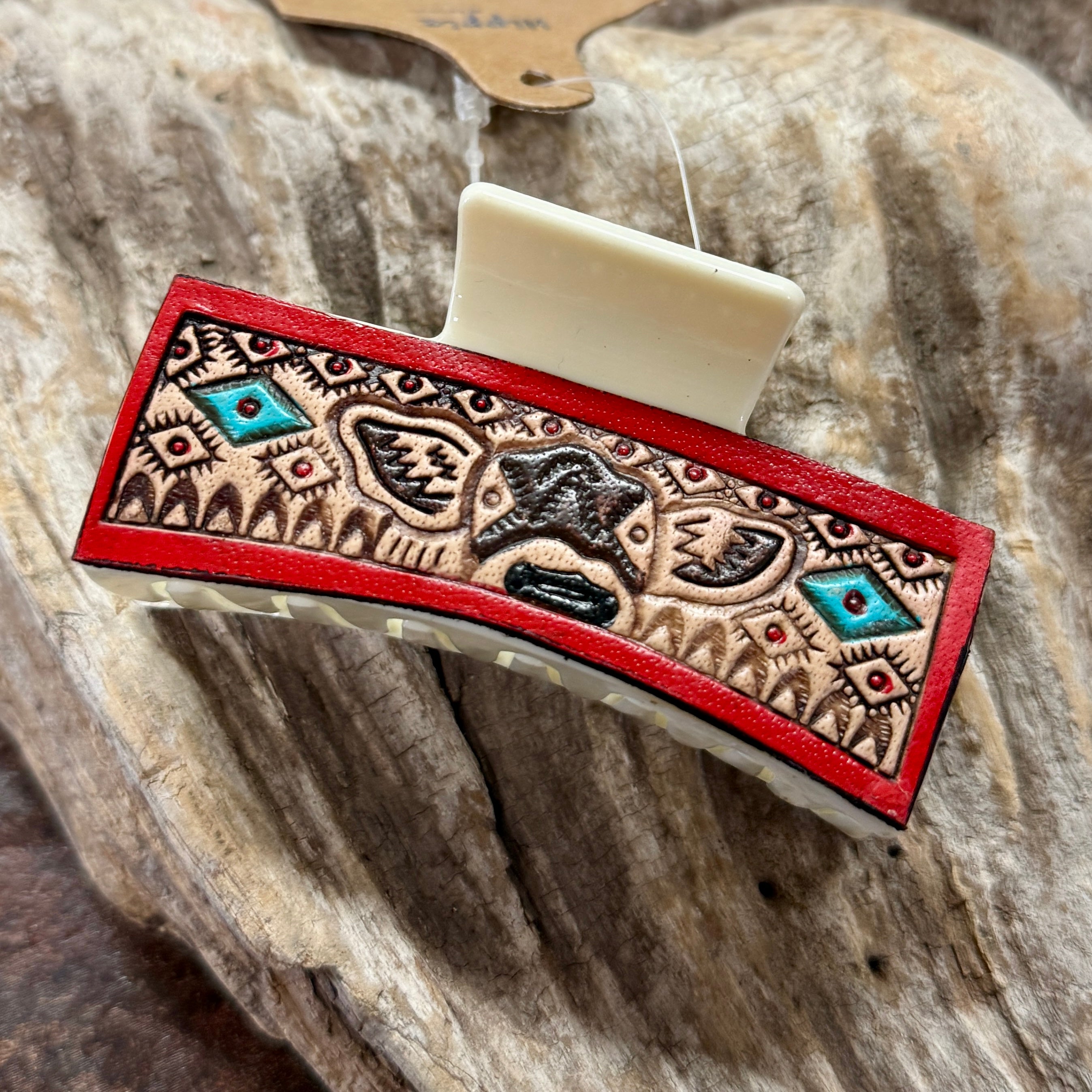 This hairclaw is perfect for any occasion. The addition of the pictures will add the right amount of elegance to any outfit.