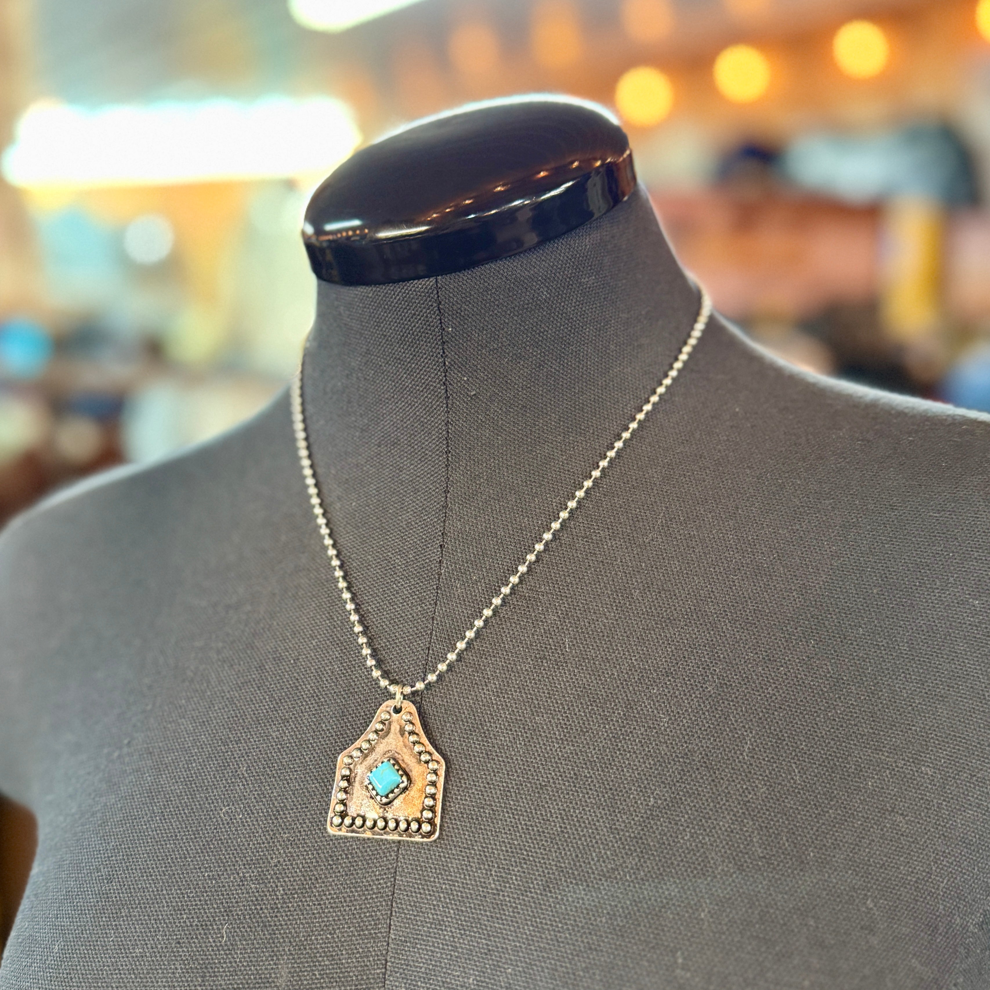 Cow Tag Turquoise Stone Western Necklace