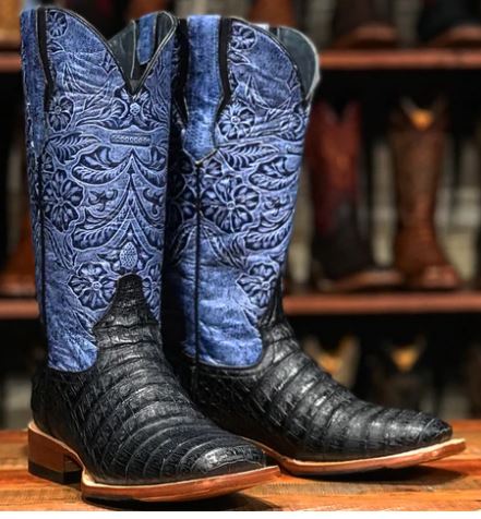 Tanner Mark Women's Caiman Foot with Navy Tooled Top Boots