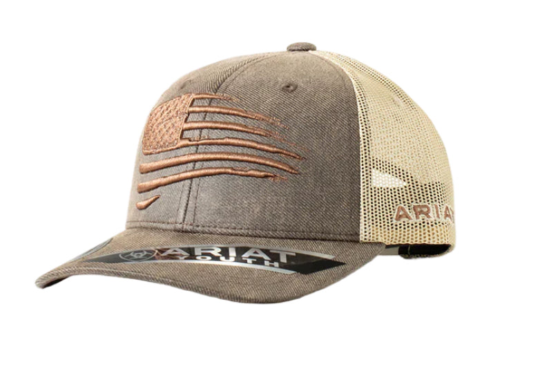 ARIAT YOUTH BOY'S DISTRESSED FLAG BROWN CAP