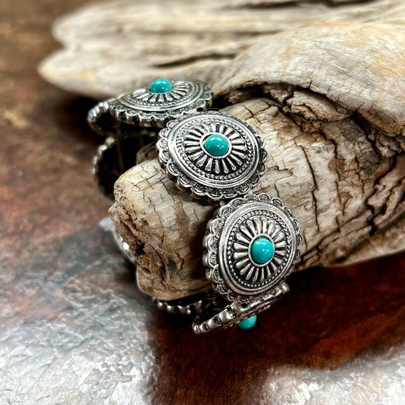 Silver Turquoise Concho Western Bracelet (Stretchy)